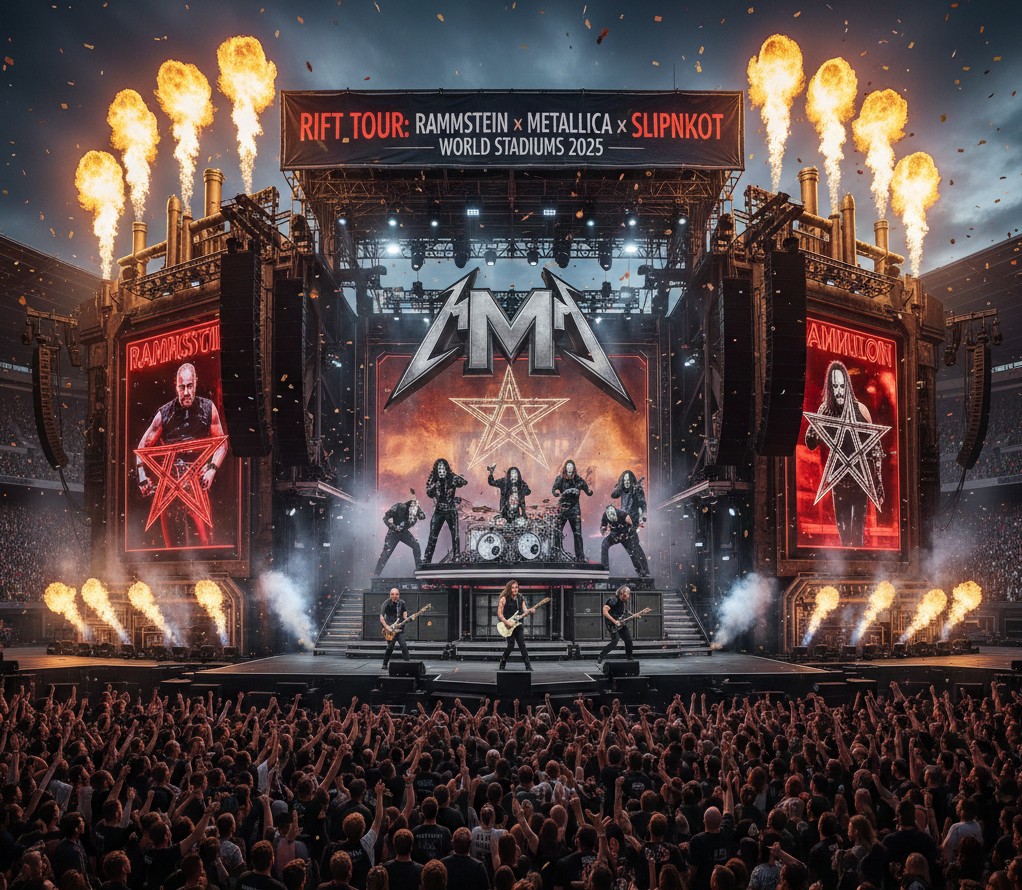 For decades, Rammstein, Metallica, and Slipknot have been pushing the boundaries of heavy music, each band carving their own legacy and building a loyal following. Now, they’ve decided to unite for a once-in-a-lifetime collaboration. The tour promises to be a jaw-dropping spectacle, combining pyrotechnics, crushing riffs, and electrifying energy. Metallica’s thunderous anthems, Rammstein’s visceral stage performances, and Slipknot’s wild, chaotic energy are a recipe for something truly extraordinary.