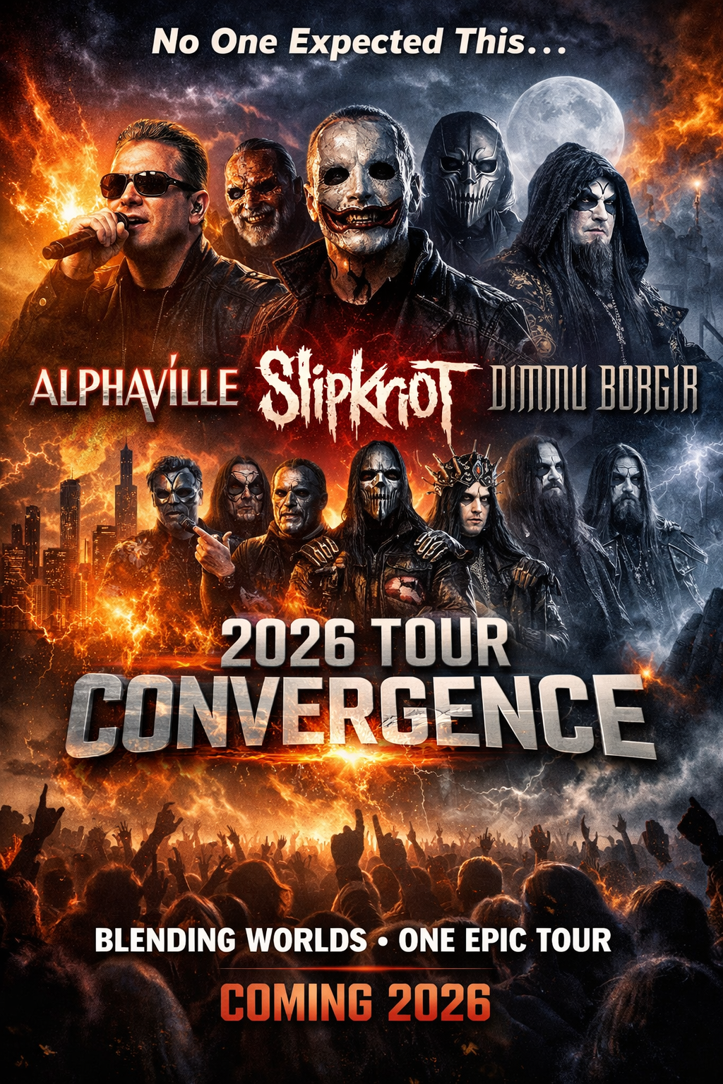 Dubbed “Convergence 2026,” the tour concept was first hinted at in late March via cryptic social media posts across all three bands’ accounts — each teasing a “new chapter of connection” and “music without limits.” In the days since, fans and industry observers have been buzzing as details emerged of what the promoters describe as “an unprecedented global experience” blending Alphaville’s lush electronic melodies, Slipknot’s visceral nu‑metal fury, and Dimmu Borgir’s grandiose symphonic metal orchestrations.