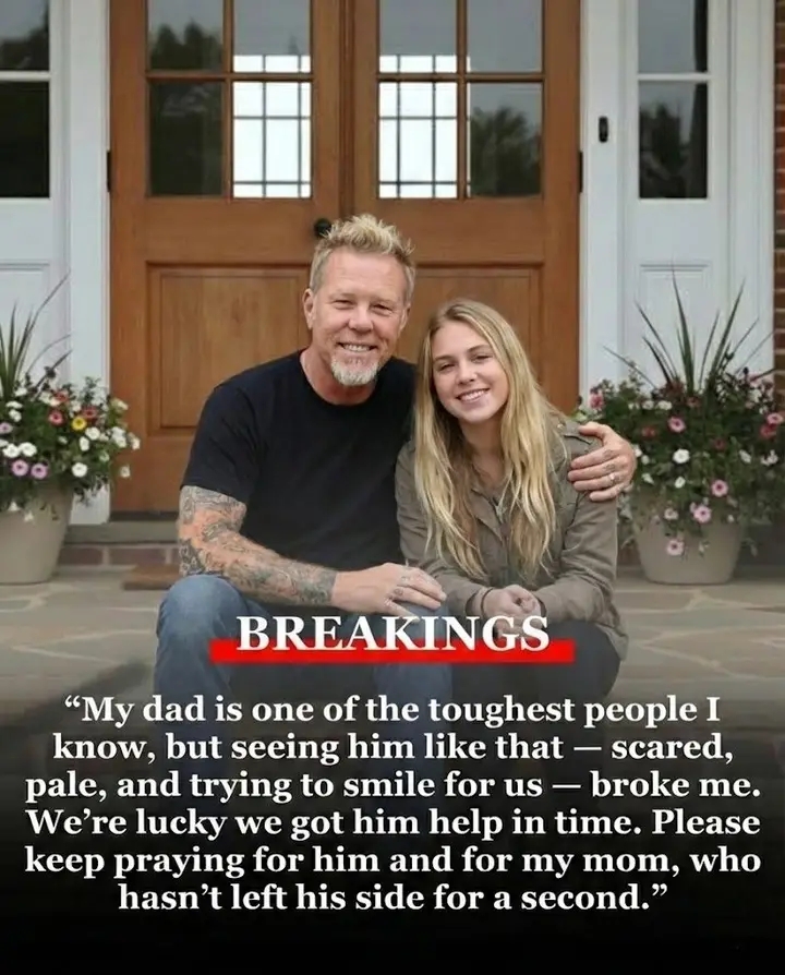 In a deeply moving moment that has rippled across the global metal community, James Hetfieldโs daughter has stepped forward with a candid update on the Metallica frontmanโs health after the iconic singer was rushed to the hospital due to a sudden medical emergency. The emotional message โ shared with fans worldwide โ expressed profound gratitude for the outpouring of support the Hetfield family has received, offering a rare glimpse into the private struggle of one of rockโs most revered figures. Although details surrounding the exact nature of his illness remain withheld, the update has sparked both relief and concern among fans and fellow musicians alike as they rally around Hetfield and his loved ones.