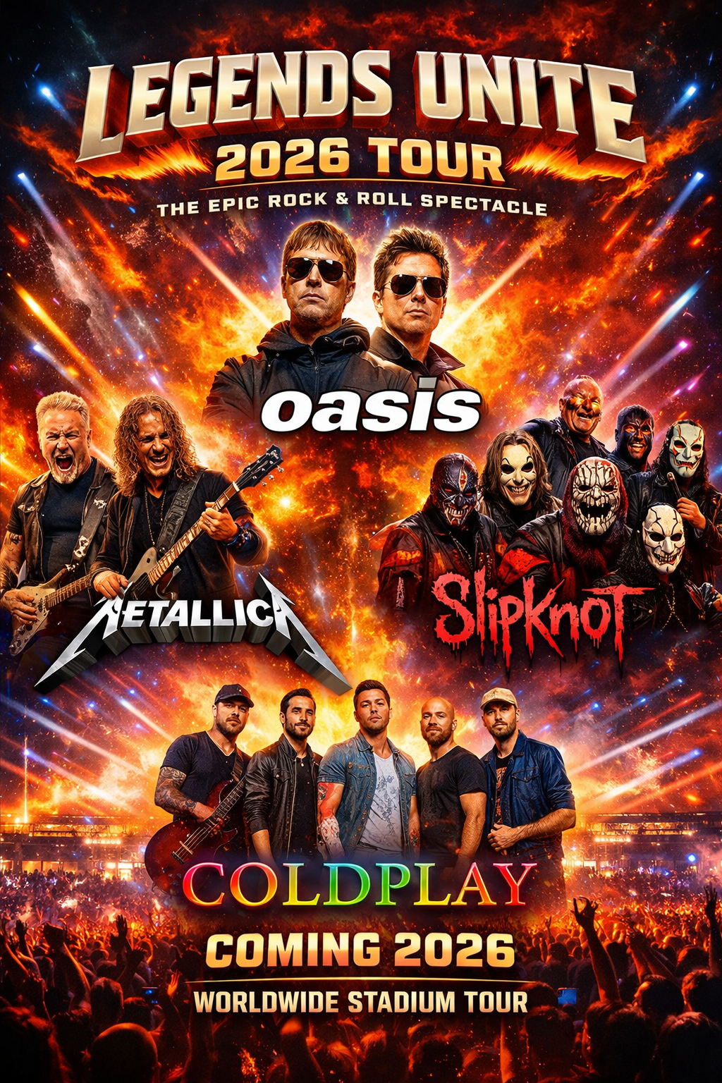 As the countdown to 2026 begins, one thing is certain: when Oasis, Metallica, Slipknot, and Coldplay step onto the same global stage, the result will not merely be a concert series. It will be a historic convergence of eras, energies, and audiences โ a celebration of rock musicโs past, present, and explosive future.