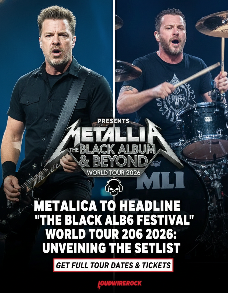 December 18, 2025 – The wait is finally over: Metallica is returning to the road in 2026 for what promises to be one of the most ambitious and electrifying global tours of their storied career. “The Black Album & Beyond” World Tour is set to take fans on a journey through the band’s legendary catalog, featuring a career-spanning setlist that celebrates both their groundbreaking 1991 self-titled album (The Black Album) and the rich history that has made them one of the most influential rock bands of all time.