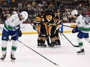 The latest showcase of Pittsburghโs strength came in a dominant 5-1 victory over the Vancouver Canucks, where captain Sidney Crosby and long-time defenseman Kris Letang led the charge. Both seasoned stars added to their already legendary careersโCrosby netted his fourth goal of the season to surpass Mario Lemieux as the franchiseโs all-time leader in combined regular-season and playoff points, while Letang quietly recorded his 600th career assist, a remarkable milestone for one of the most enduring blue-liners in the NHL.