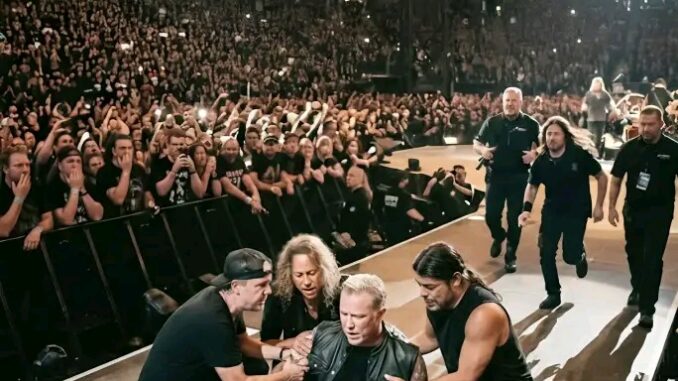 Tonight was supposed to be another thunderous chapter in Metallica’s never-ending story — a celebration of legacy, endurance, and the sacred bond between a band and its people. Instead, it became one of the most frightening, emotional, and defining moments in modern music history.