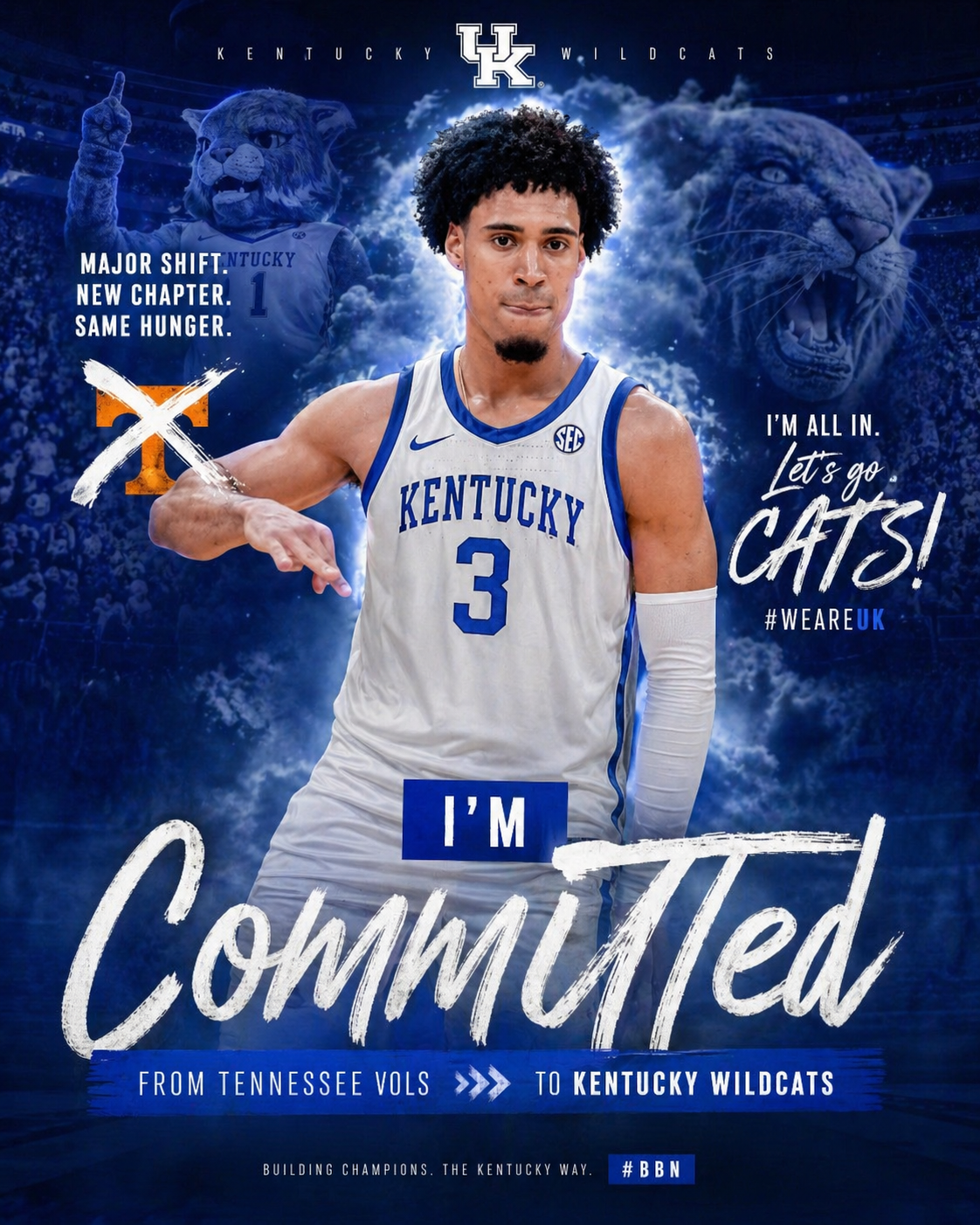 Top Tennessee standout shocks college basketball world by announcing commitment to Kentucky Wildcats, signaling a dramatic SEC power shift as fans react to the unexpected move and anticipate how his talent could reshape Kentucky’s roster and championship hopes next season